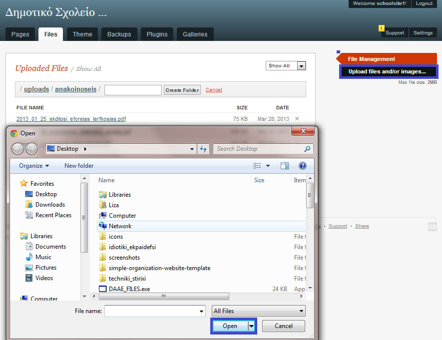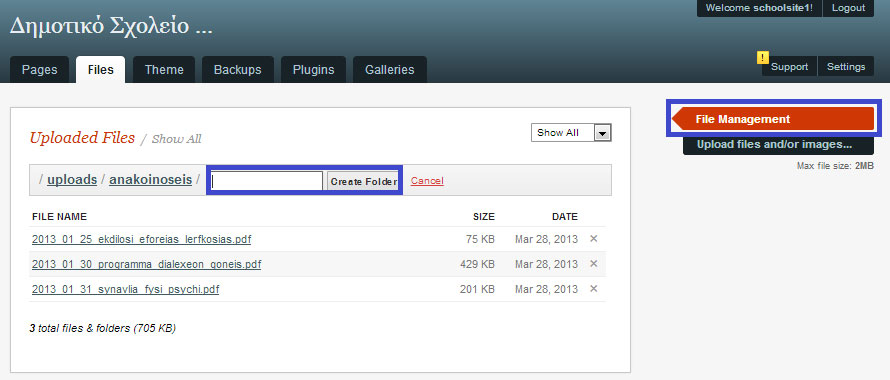 Α’ Τρόπος: Ανέβασμα αρχείων μέσω του Συστήματος Διαχείρισης Περιεχομένου (CMS) Get Simple